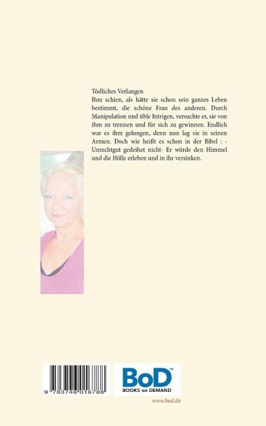 Ihm schien, als hätte sie schon sein ganzes Leben bestimmt, die schöne Frau des anderen. Durch Manipulation und üble Intrigen versuchte er, sie von ihm zu trennen und für sich zu gewinnen. Endlich war es ihm gelungen, denn nun lag sie in seinen Armen. Doch wie heißt es schon in der Bibel: -Unrecht Gut gedeihet nicht- Er würde den Himmel und die Hölle erleben und in ihr versinken.