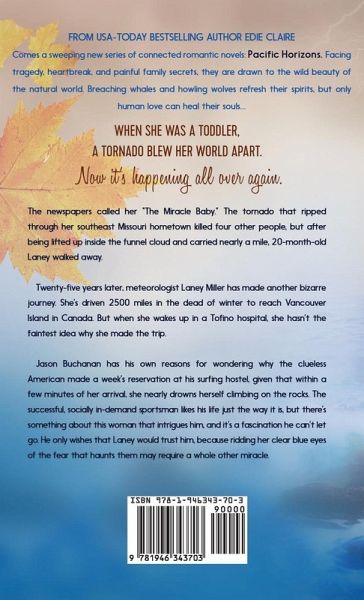 Fifth in the USA-Today bestselling PACIFIC HORIZONS series! In these interconnected romantic novels, characters facing tragedy, heartbreak, and painful family secrets are drawn to the wild beauty of the natural world. Breaching whales and howling wolves refresh their spirits, but only human love can heal their souls. When she was a toddler, a tornado blew her world apart. Now it's happening all over again. The newspapers called her "The Miracle Baby." The tornado that ripped through her southeast Missouri hometown killed four other people, but after being lifted up inside the funnel cloud and carried nearly a mile, 20-month-old Laney walked away. Twenty-five years later, meteorologist Laney Miller has made another bizarre journey. She's driven 2500 miles in the dead of winter to reach Vancouver Island in Canada. But when she wakes up in a Tofino hospital, she hasn't the faintest idea why she made the trip. Jason Buchanan has his own reasons for wondering why the clueless American made a week's reservation at his surfing hostel, given that within a few minutes of her arrival, she nearly drowns herself climbing on the rocks. The successful, socially in-demand sportsman likes his life just the way it is, but there's something about this woman that intrigues him, and it's a fascination he can't let go. He only wishes that Laney would trust him, because ridding her clear blue eyes of the fear that haunts them may require a whole other miracle. Praise for romantic fiction by Edie Claire: LONG TIME COMING "Emotionally gripping, suspenseful and superb... I was held in wonderment over much of this story and realized early on to expect the unexpected. This is a story of trust, love, friendship and healing. Ms. Claire is an author I hope to see more of in the future. If Long Time Coming is any indication of her writing talent, I will be first in line at the bookstores to get more of her work. This is a positively splendid tale from start to finish and is highly recommended." Reviewer's Choice Award -- Road to Romance "Two words. ABSOLUTELY FANTASTIC! Edie Claire has written a wonderful novel about friendship, love, guilt and death... Utterly riveting." Rating: 10/10 -- Contemporary Romance Writers MEANT TO BE "One of the best books I have read this year... An element of suspense runs through the pages, and the endearing tale builds to a crescendo of excitement and thrill while warming the heart. Meant To Be is a powerful story of love, healing, discovery and truth... I closed the covers wishing I could stay inside the green world of Meara and Fletcher's mountain. Ms. Claire has woven a tale that touched my soul and will live as a cherished keeper to read again and again. I am pleased to award Meant To Be our finest honor, RRT's Perfect 10." Perfect 10 Award -- Romance Reviews Today "Meant to be written, read and remembered in your heart decades after you've turned the last page. Edie Claire is an exceptional author and keeper of the heart." -- Writers Room Magazine "A paragon of superbly written, compelling women's literature." -- My Shelf