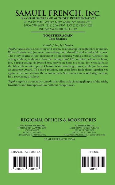 Together Again spans a touching and stormy relationship through three reunions. When Chrissie and Joe meet, something both dreadful and wonderful occurs. The story begins in the apartment of an aspiring young actress. Chrissie, an acting student, is about to host her acting class' fifth reunion, when her hero, Joe, a rising young Hollywood star, arrives an hour too soon. Ten years later, at the fifteenth reunion party, Chrissie is still studying drama, while Joe has won an Academy Award.