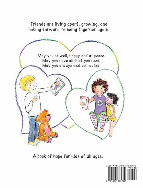 A picture book to help lift children's spirits and cope with changes resulting from social distancing and staying home during a time of quarantine. Friends living apart learn in new ways, stay connected and hopeful, grow in strength and resiliency, and look forward to being together again with friends, cousins, and grandparents. It focuses on dealing with difficult emotions resulting from separation and from missing loved ones, and from what kids may perceive as unknown and scary times. The story and illustrations simply and succinctly show the "new normal," like staying home, connecting with friends and family remotely, hand washing, wearing masks and gloves, homeschooling, and sharing and caring. It validates kids' feelings and experiences and encourages deep heart connection and positive thinking. And it inspires kids to feel secure and trust that our world will heal and that soon most of us will be well, happy, at peace, and together again.
