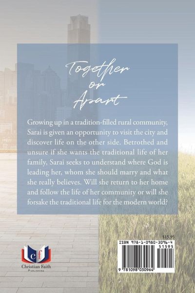 Growing up in a tradition-filled rural community, Sarai is given an opportunity to visit the city and discover life on the other side. Betrothed and unsure if she wants the traditional life of her family, Sarai seeks to understand where God is leading her, whom she should marry and what she really believes. Will she return to her home and follow the life of her community or will she forsake the traditional life for the modern world?