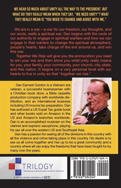 We hear so much about unity all the way to the President. But what do they really mean when they say, "We need unity"? What they really mean is "you need to change and agree with me." We are in a war-a war for our freedom, our thoughts, and our souls, really a spiritual war. Dan begins with the roots of our authority to engage in spiritual warfare and how we can engage in that warfare to change the spiritual atmosphere, people's hearts, take charge of the evil around us, and win this war. Together We Rise will give you the ammunition you need to win your war and then show you what unity really means for you, your family, your community, your church, city, state, and this nation. It begins on a very personal level with our hearts to live in unity so that "together we rise."