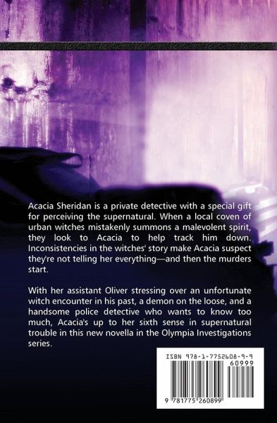 Acacia Sheridan is a private detective with a special gift for perceiving the supernatural. When a local coven of urban witches mistakenly summons a malevolent spirit, they look to Acacia to help track him down. Inconsistencies in the witches' story make Acacia suspect they're not telling her everything—and then the murders start. With her assistant Oliver stressing over an unfortunate witch encounter in his past, a demon on the loose, and a handsome police detective who wants to know too much, Acacia's up to her sixth sense in supernatural trouble in this new novella in the Olympia Investigations series.