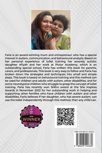 This book has incredible strategies and techniques which are broken down into easy-to-follow steps to help you toilet-train your child/adult with autism and other disabilities. This method is based on 'behavioural training' that can be used at any age, & ability and can also be used for some neurotypical children who struggle to grasp the concept of toilet training. This book aims to empower parents, carers, and professionals by giving them the tools and techniques to implement a well-organised toilet training program and get their child to use the toilet independently. By the end of this book, you will feel fully prepared to embark on this journey.