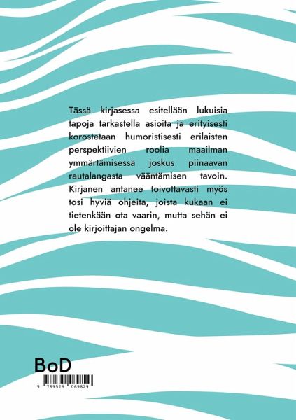 Tässä kirjasessa esitellään lukuisia tapoja tarkastella asioita ja erityisesti korostetaan humoristisesti erilaisten perspektiivien roolia maailman ymmärtämisessä joskus piinaavan rautalangasta vääntämisen tavoin. Kirjanen antanee toivottavasti myös tosi hyviä ohjeita, joista kukaan ei tietenkään ota vaarin, mutta sehän ei ole kirjoittajan ongelma.