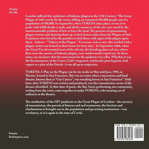 TOKENS was originally produced by the Blake Street Hawkeyes, Mixed Bag Productions & Whoopi Goldberg in association with Theater Artaud. TOKENS ran for six weeks from May 16th, 1985 to June 30th, 1985 at Theater Artaud in San Francisco. This was at a time when a mysterious and fatal disease was reeking havoc in San Francisco; known then as "Gay Cancer," it was soon to be called AIDS (Auto Immune Deficiency Syndrome ) and now, HIV (Human Immunodeficiency Virus). Only later, after TOKENS was produced, was the transmission vector of the disease identified. The similarities of the HIV pandemic to the Great Plague of London; the mystery of transmission, the pursuit of fatuous and real treatments, the heroism and charlatanism it brought out in the population and governing institutions, was prescient, as it is again in the time of Covid. At that time of panic (1985) the Bay Area's performing arts community, reeling from the crisis, came together to make TOKENS a devastating act of catharsis in the theater.