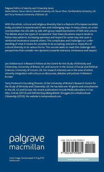 Across European societies, pluralism is experienced in new and challenging ways. Our understanding of what it means for societies to be accepting of diversity has to therefore be revisited. This volume seeks to meet this challenge with perspectives that consider new dynamics towards tolerance, intolerance and respect.