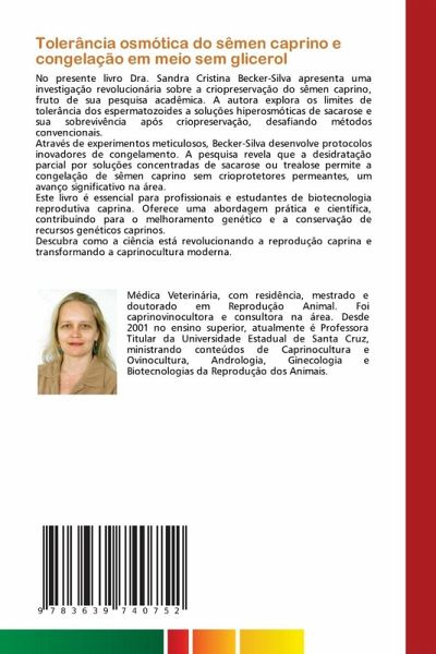 No presente livro Dra. Sandra Cristina Becker-Silva apresenta uma investigação revolucionária sobre a criopreservação do sêmen caprino, fruto de sua pesquisa acadêmica. A autora explora os limites de tolerância dos espermatozoides a soluções hiperosmóticas de sacarose e sua sobrevivência após criopreservação, desafiando métodos convencionais.Através de experimentos meticulosos, Becker-Silva desenvolve protocolos inovadores de congelamento. A pesquisa revela que a desidratação parcial por soluções concentradas de sacarose ou trealose permite a congelação de sêmen caprino sem crioprotetores permeantes, um avanço significativo na área.Este livro é essencial para profissionais e estudantes de biotecnologia reprodutiva caprina. Oferece uma abordagem prática e científica, contribuindo para o melhoramento genético e a conservação de recursos genéticos caprinos.Descubra como a ciência está revolucionando a reprodução caprina e transformando a caprinocultura moderna.