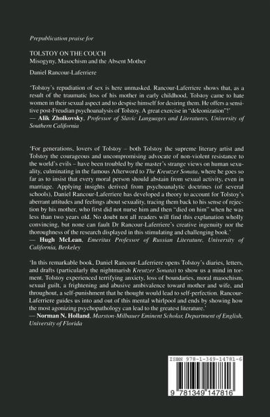 In his 1889 novella The Kreutzer Sonata Lev Tolstoy declared war on human sexuality. Having fathered thirteen children by his wife and at least two children by peasant women, the great Russian writer now has the arrogance to suggest that people should stop having children. Psychoanalysis of Tolstoy's diaries and other private materials reveals that Tolstoy's anti-sex position was grounded in a sadistic attitude towards women (including his wife Sonia) and a punishing, masochistic attitude towards himself. These feelings, in turn, were related to the trauma of maternal loss in Tolstoy's early childhood.