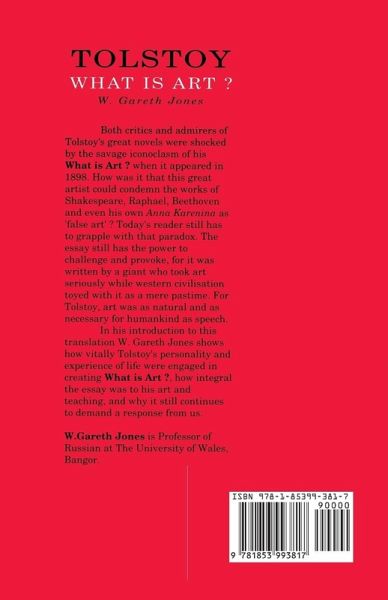 Both critics and admirers of Tolstoy's great novel were shocked by the savage iconoclasm of his What is Art? when it appeared in 1898. How was it that this great artist could condemn the works of Shakespeare, Raphael, Beethoven and even his own Anna Karenina as 'false art'? Today's reader still has to grapple with that paradox. The essay still has power to challenge and provoke, for it was written by a giant who took art seriously while western civilisation toyed with it as a mere pastime. For Tolstoy, art was as natural and as necessary for humankind as speech. In his introduction to this translation, W. Gareth Jones shows how vitally Tolstoy's personality and experience of life were engaged in creating What is Art?, how integral the essay was to his art and teaching, and why it continues to demand a response from us.