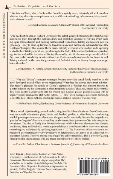 Table of Contents Acknowledgements Introduction: Aesthetic Kin Altruism 1. Background and Overview 2. Family Structures 3. Kin Altruism 4. Names and Family Traditions 5. Writing the Novel with the Family 6. The Problem with Prototypes 7. Genetic Allies 8. Unrelated Family Associates 9. Distant Relatives 10. Tolstoy s Grandparents 11. Tolstoy s Parents 12. The Parents Marriage 13. What about Sonya? 14. A Genetic Clash and Inclusive Errors 15. Incest Avoidance A. Actual Brother-Sister/Parent-Child (50% Relatedness) B. Avuncular (25% Relatedness) C. Cousins (12.5% Relatedness) D. First Cousin Once Removed (6.25% Relatedness) E. Second Cousin (3.125% Relatedness) F. Affinity (0% Relatedness) G. The Westermarck Effect (0% Relatedness) 16. Self-Altruism 17. Kin Altruism Reconsidered Bibliography Index