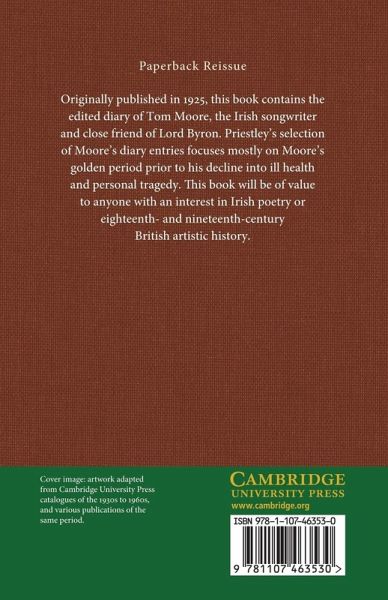 Originally published in 1925, this book contains the edited diary of Tom Moore, the Irish songwriter and close friend of Lord Byron. Priestley's selection of Moore's diary entries focuses mostly on Moore's golden period prior to his decline into ill health and personal tragedy. This book will be of value to anyone with an interest in Irish poetry or eighteenth- and nineteenth-century British artistic history.
