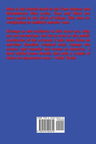 Here is the fourth book in the Tom Sawyer and Huckleberry Finn series. Tom and Huck are once again in the thick of things. This time investigating an unlikely murder case. Strange as the incidents of this story are, they are not inventions, but facts-even to the public confession of the accused. I take them from an old-time Swedish criminal trial, change the actors, and transfer the scenes to America. I have added some details, but only a couple of them are important ones. - Mark Twain
