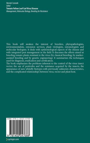 Woldwide Expansion of TYLCV.- Appearance and Expansion of TYLCV: a Historical Point of View.- An insular environment before and after TYLCV introduction.- The Bemisia Tabaci Complex: Genetic and Phenotypic Variation and Relevance to TYLCV-Vector Interactions.- Survival of Whiteflies during Long-Distance Transportation of Agricultural Products and Plants.- The TYLCV Genome.- The Tomato Yellow Leaf Curl Virus Genome and Function of its Proteins.- Molecular Biodiversity, Taxonomy, and Nomenclature of Tomato Yellow Leaf Curl-like Viruses.- Recombination in the TYLCV Complex: a Mechanism to Increase Genetic Diversity. Implications for Plant Resistance Development.- Virus-Vector-Plant Interactions.- Replication of Geminiviruses and the use of Rolling Circle Amplification for their Diagnosis.- Interactions of Tomato Yellow Leaf Curl Virus with its Whitefly Vector.- Localization of Tomato Yellow Leaf Curl Virus in its Whitefly Vector Bemisia Tabaci.- Movement and localization of Tomato Yellow Leaf Curl Viruses in the Infected Plant.- Identification of Plant Genes Involved in TYLCV Replication.- Biotic and Abiotic Stress Responses in Tomato Breeding Lines Resistant and Susceptible to Tomato Yellow Leaf Curl Virus.- Integrated Pest Management Measures and Protection of Tomato Cultures.- Detection methods for TYLCV and TYLCSV.- Management of Tomato yellow leaf curl virus: US and Israel Perspectives.- The management of Tomato yellow Leaf Curl Virus in Greenhouses and the Open Field, a Strategy of Manipulation.- of Tomato Yellow Leaf Curl Virus into the Dominican Republic: the Development of a Successful Integrated Pest Management Strategy.- Resistance to Insecticides in the TYLCV vector, Bemisia Tabaci.- Natural and Engineered Resistance.- Screening for TYLCV-Resistance Plants using Whitefly-Mediated Inoculation.- Sources of Resistance, Inheritance, and Location of Genetic Loci Conferring Resistance to Members of the Tomato-Infecting Begomoviruses.- Exploitation of resistance genes found in wild tomato species to produce resistant cultivars; Pile up of Resistant Genes.- Transgenic approaches for the Control of Tomato Yellow Leaf Curl Virus.- Gene silencing of Tomato Yellow Leaf Curl Virus.- International networks to deal with the TYLCV disease: the needs of the developing countries.- International Networks to deal with Tomato Yellow Leaf Curl Disease: the Middle East Regional Cooperation Program.- AVRDC's International Networks to deal with the Tomato Yellow Leaf Curl Disease: the needs of Developing Countries.