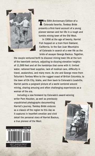 A Colorado favorite, Tomboy Bride presents the first-hand account of a young pioneer woman and her life in a rough and tumble mining town of the Old West. In 1906 at the age of twenty, Harriet Fish hopped on a train from Oakland, California, to the San Juan Mountains of Colorado in search of a new life as the bride of assayer George Backus. Together, the couple ventured forth to discover mining town life at the turn of the twentieth century, adjusting to dizzying elevation heights of 11,500 feet and all the hardships that come with it: limited water, rationed food supplies, lack of medical care, difficulty in travel, avalanches, and many more. As she and George move from Telluride's Tomboy Mine to the rugged coast of British Columbia, to the town of Elk City, Idaho, and then back to Colorado's Leadville, Harriet paints a poignant picture of a world centered around mining, sharing amusing and often challenging experiences as a woman of the era. With a new foreword by award-winning author Pam Houston, this 50th anniversary edition also includes previously unpublished black and white photographs documenting Harriet's journey. Tomboy Bride endures as a classic of the region to this day as it captures in heart-felt emotion and vivid detail the personal account of Harriet Backus, a true pioneer of the West.