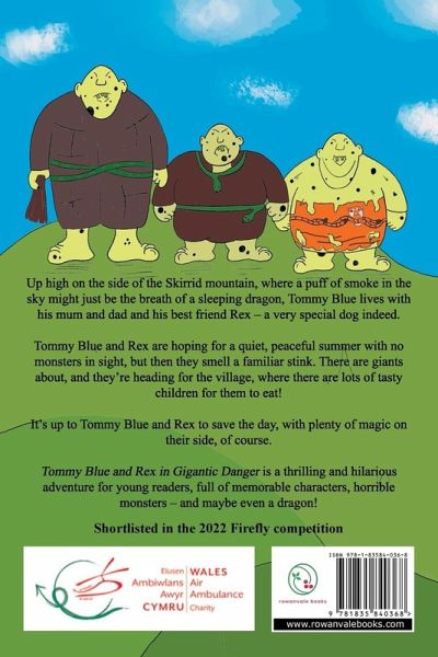 Up high on the side of the Skirrid mountain, where a puff of smoke in the sky might just be the breath of a sleeping dragon, Tommy Blue lives with his mum and dad and his best friend Rex - a very special dog indeed. Tommy Blue and Rex are hoping for a quiet, peaceful summer with no monsters in sight, but then they smell a familiar stink. There are giants about, and they're heading for the village, where there are lots of tasty children for them to eat! It's up to Tommy Blue and Rex to save the day, with plenty of magic on their side, of course. Tommy Blue and Rex in Gigantic Danger is a thrilling and hilarious adventure for young readers, full of memorable characters, horrible monsters - and maybe even a dragon! Shortlisted for the Firefly New Fiction from Wales 2022 Competition Funds raised from the sale of this book will go to the Wales Air Ambulance charity.