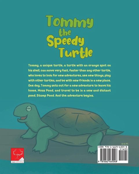 Tommy, a unique turtle, a turtle with an orange spot on his shell, can move very fast, faster than any other turtle, who loves to look for new adventures, see new things, play with other turtles, and be with new friends in a new place. One day, Tommy sets out for a new adventure to leave his home, Moss Pond, and travel to be in a new and distant pond, Stump Pond. And the adventure begins.