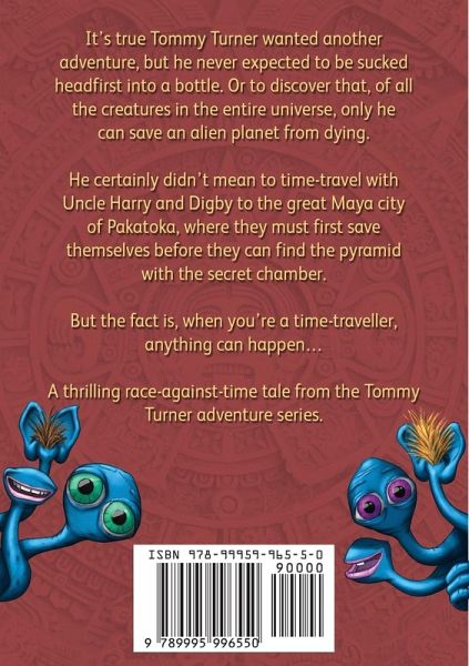 It’s true Tommy Turner wanted another adventure, but he never expected to be sucked headfirst into a bottle. Or to discover that, of all the creatures in the entire universe, only he can save an alien planet from dying. He certainly didn’t mean to time-travel with Uncle Harry and Digby to the great Maya city of Pakatoka, where they must first save themselves before they can find the pyramid with the secret chamber. But the fact is, when you’re a time-traveller, anything can happen… A thrilling race-against-time tale from the Tommy Turner adventure series with 28 black and white illustrations. Other books in the series - Tommy Turner's Tremendous Travels "Fantastic, heart-warming and fast-paced adventure that was impossible to put down. I absolutely loved every phrase of it!" The Book Traveller "The writing is exceptional" The Book Life Prize 2017