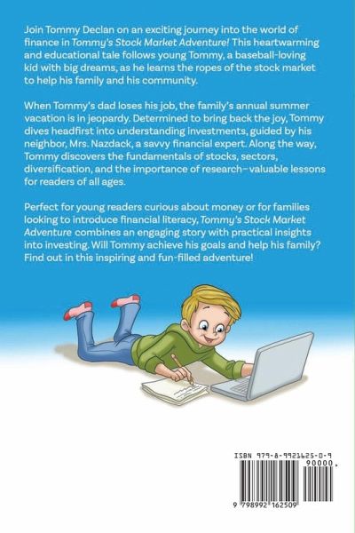 Join Tommy Declan on an exciting journey into the world of finance in Tommy's Stock Market Adventure! This heartwarming and educational tale follows young Tommy, a baseball-loving kid with big dreams, as he learns the ropes of the stock market to help his family and his community. When Tommy's dad loses his job, the family's annual summer vacation is in jeopardy. Determined to bring back the joy, Tommy dives headfirst into understanding investments, guided by his neighbor, Mrs. Nazdack, a savvy financial expert. Along the way, Tommy discovers the fundamentals of stocks, sectors, diversification, and the importance of research-valuable lessons for readers of all ages. Perfect for young readers curious about money or for families looking to introduce financial literacy, Tommy's Stock Market Adventure combines an engaging story with practical insights into investing. Will Tommy achieve his goals and help his family? Find out in this inspiring and fun-filled adventure! Ideal for ages 8-12 A must-read for budding investors and curious minds!
