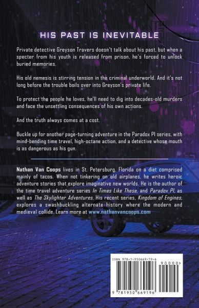 HIS PAST IS INEVITABLE Private detective Greyson Travers doesn't talk about his past, but when a specter from his youth is released from prison, he's forced to unlock buried memories. His old nemesis is stirring tension in the criminal underworld. And it's not long before the trouble boils over into Greyson's private life. To protect the people he loves, he'll need to dig into decades old murders and face the unsettling consequences of his own actions. And the truth always comes at a cost. Buckle up for another page-turning adventure in the Paradox PI series, with mind-bending time travel, high-octane action, and a detective whose mouth is as dangerous as his gun.