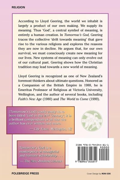 According to Lloyd Geering, the world we inhabit is largely a product of our own making. We supply its meaning. Thus "God," a central symbol of meaning, is entirely a human creation. In Tomorrow's God, Geering traces the collective "drift toward meaning" that gave rise to the various religions and explores the reasons they are now in decline. He argues that, for our own survival, we must consciously create new meaning for our lives and shows how the Christian tradition may lead toward a new world of meaning.