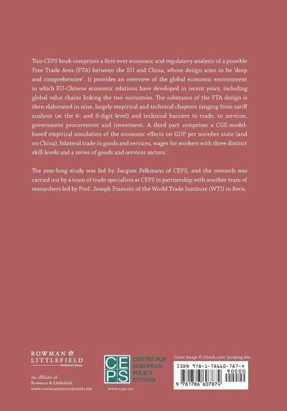 Executive Summary Introduction Part I: The Global and Bilateral Context 1. Why an EU-China free trade area? 2. China and the EU in a rapidly changing world economy 3. Bilateral economic relations: Trade and investments 4. Global value chains: Significance for the EU and China Part II: Design and Substance of an EU-China FTA 5. What would an EU-China FTA look like? 6. Market access in industrial goods: An analysis of tariffs 7. Market access in goods: Trade defence remedies 8. Market access in agriculture: Tariffs and tariff-rate quotas 9. Technical barriers to trade 10. Reducing SPS barriers in an EU-China FTA 11. Market access in services: China and the EU 12. Public procurement 13. Intellectual property rights and geographical indications 14. State-owned enterprises (SOEs) and competition policy 15. Investment and the BIT Part II:Potential Economic Impact: A CGE-based simulation of effects of the FTA 16. Introduction 17. Trade and production linkages 18. Removing tariffs and reducing NTM costs in a China-EU FTA 19. Modelling the FTA between China and the EU Part IV: Conclusions and Policy Implications 20. Policy implications of an EU-China free trade agreement References