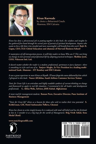 Tonic for Great Life is a quest for the best, a quest that can make us more positive, purposeful, and peaceful. A leap to holistic, harmonious, and happy life, TONIC is an acronym for truth overcomes negatively influenced conditions. Amid worldly chaos, there is hardly anyone alive who doesn’t want to (1) love and be loved, (2) grow infinitely (e.g., become a businessperson who wants to scale up endlessly), and (3) live as long as possible because there is something in us that is pure love, infinite and eternal. The author has well bridged the principles and practicalities of day-to-day life as such that anybody can easily understand, enjoy reading, and aspire for a great life. The book has easy analogies, relevant examples, and self-conceived two-liners by the author that will make you smile; and you will be tempted to share the insights (tonic) with your dear ones via SMS or FB. Knowing your great gift (strength) and how to create great self for great purpose, how to be holistically intelligent, strengthen great relationship, and lead by great example are honest attempts of the author. You can be an employee or entrepreneur, a student or teacher—you can be a great change-maker.