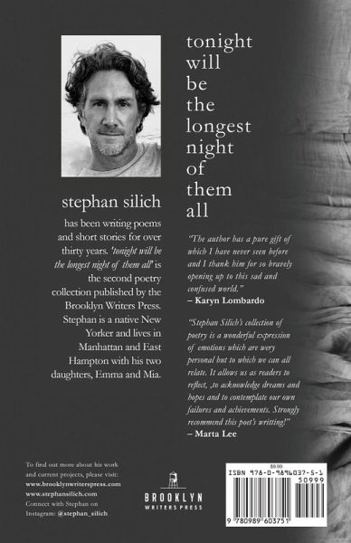 Tonight Will Be The Longest Night of Them All, the second collection by Stephan Silich, touches on love, family, fatherhood, life and mortality. His words inspire those who have a longing for the things others take for granted. Often readers of his work say his words are a door to memories and moments long forgotten. Like in his first collection, some of his poems are an ode to his native New York.
