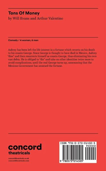 Aubrey has been left the life interest in a fortune which reverts on his death to his cousin George. Since George is thought to have died in Mexico, Aubrey "dies" and then resurrects himself as cousin George, thus eliminating his own vast debts. He is obliged to "die" and take on other identities twice more to avoid complications, until the real George turns up, announcing that the Mexican Government has annexed the fortune.-4 women, 6 men