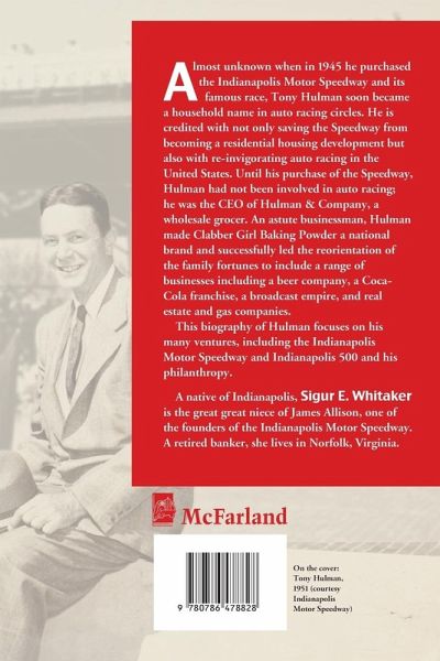 Almost unknown when in 1945 he purchased the Indianapolis Motor Speedway and its famous race, Tony Hulman soon became a household name in auto racing circles. He is credited not only with saving the Speedway from becoming a residential housing development but also with reinvigorating auto racing in the United States. Until his purchase of the Speedway, Hulman had not been involved in auto racing; he was the CEO of Hulman & Company, a wholesale grocer. An astute businessman, Hulman made Clabber Girl Baking Powder a national brand and successfully led the reorientation of the family fortunes to include a range of businesses including a beer company, a Coca-Cola franchise, a broadcast empire, and real estate and gas companies. This biography of Hulman covers his many ventures, particularly the Indianapolis Motor Speedway and Indianapolis 500, and his philanthropy.