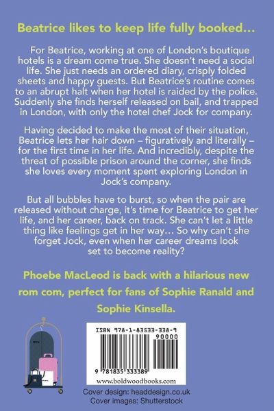 Phoebe MacLeod is back with a BRAND NEW hilarious rom com, perfect for fans of Sophie Ranald and Sophie Kinsella. For Beatrice, working at one of London's boutique hotels is a dream come true. She doesn't need a social life. She just needs an ordered diary, crisply folded sheets and happy guests. But Beatrice's routine comes to an abrupt halt when her hotel is raided by the police. Suddenly she finds herself released on bail, and trapped in London, with only the hotel chef Jock for company. Having decided to make the most of their situation, Beatrice lets her hair down - figuratively and literally - for the first time in her life. And incredibly, despite the threat of possible prison around the corner, she finds she loves every moment spent exploring London in Jock's company. But all bubbles have to burst, so when the pair are released without charge, it's time for Beatrice to get her life, and her career, back on track. She can't let a little thing called feelings get in her way... So why can't she forget Jock, even when her career dreams look set to become reality? Beatrice may like to keep life fully booked, but can you ever really be too busy for love? Readers LOVE Phoebe MacLeod's books: 'The perfect book.' Goodreads review ⭐️⭐️⭐️⭐️⭐️ 'This book fundamentally changed me and now I need to read every romcom I can get my claws on! I giggled, I almost threw my book, I kicked my little feet, and I finished it basically in one sitting ... what more could you ask for?' Goodreads review ⭐️⭐️⭐️⭐️⭐️ 'MacLeod weaves a tale of unexpected love, second chances, and the magic of warm summer days.' Goodreads review ⭐️⭐️⭐️⭐️⭐️ 'I love when a book can make me LOL in real life the whole time. This was such a fun rom-com and a safe one for people who like books without all the spice.' Goodreads review ⭐️⭐️⭐️⭐️⭐️ 'This is a delightfully sweet and charming romantic comedy with a grumpy/sunshine trope (one of my favorites!)' Goodreads review ⭐️⭐️⭐️⭐️⭐️ 'It's a very light, feelgood read and certainly put a smile on my face.' Goodreads review ⭐️⭐️⭐️⭐️⭐️ 'A cute rom-com that focuses on friendship and different types of relationships, not just romance. I loved it, the characters are messy and complex as in real life.' Goodreads review ⭐️⭐️⭐️⭐️⭐️