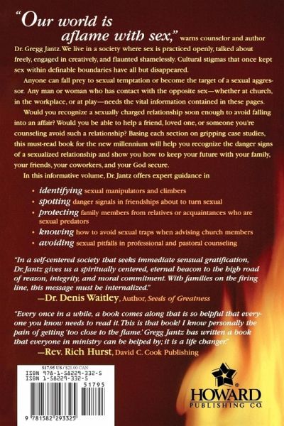 "Our world is aflame with sex," warns counselor and author Dr. Gregg Jantz. We live in a society where sex is practiced openly, talked about freely, engaged in creatively, and flaunted shamelessly. Cultural stigmas that once kept sex within definable boundaries have all but disappeared. Anyone can fall prey to sexual temptation or become the target of a sexual aggressor. Any man or woman who has contact with the opposite sex -- whether at church, in the workplace, or at play -- needs the vital information contained in these pages. Would you recognize a sexually charged relationship soon enough to avoid falling into an affair? Would you be able to help a friend, loved one, or someone you're counseling avoid such a relationship? Basing each section on gripping case studies, this must-read book for the new millennium will help you recognize the danger signs of a sexualized relationship and show you how to keep your future with your family, your friends, your coworkers, and your God secure. In this informative volume, Dr. Jantz offers expert guidance in: * identifying sexual manipulators and climbers * spotting danger signals in friendships about to turn sexual * protecting family members from relatives or acquaintances who are sexual predators * knowing how to avoid sexual traps when advising church members * avoiding sexual pitfalls in professional and pastoral counseling