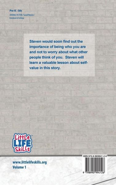 Steven would soon find out the importance of being who you are and not to worry about what other people think of you. Steven will learn a valuable lesson about self-value in this story. Too Cool for School is part of the Little Life Skills children's book series. Through engaging storytelling, the Little Life Skills series empowers children to cultivate essential life skills that can be applied in everyday life. Each book in the series presents relatable scenarios that resonate with young readers, teaching them how to navigate real-world challenges with empathy, critical thinking, and…mehr
