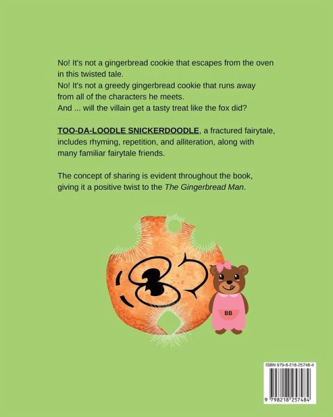 TOO-DA-LOODLE SNICKERDOODLE, a fractured fairytale as told by the Little Red Hen provides a positive twist to the traditional tale of The Gingerbread Man. The author has written this delightful story to entertain children of all ages with its rhyme, repetition, and alliteration; making it an enjoyable read-aloud. As the cookie meets several of Little Red's fairytale friends on its journey, the reader is able to identify and make connections with these classic well-known characters. The concept of sharing is evident throughout the book, adding a socially important twist to the original Gingerbread Man tale. B. E. Blubaugh has added a personal touch, including her husband's delicious Snickerdoodle recipe, along with hidden photos of her dogs, Brodie and Marley, both of which love to beg for snickerdoodles fresh from the oven. The Would You Rather questions, together with a compare and contrast chart, help to enhance the educational aspect for the older child's critical and creative thinking skills. "Whether my book remains a read-aloud in your home or classroom, or becomes a learning tool for higher level thinking skills, I am overjoyed to put it into the hands of those who are familiar with fairytales as well as those who are not. Just like nursery rhymes, I feel that fairytales need to become 'alive' again for all children." B. E. Blubaugh