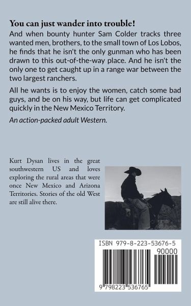 You can just wander into trouble! And when bounty hunter Sam Colder tracks three wanted men, brothers, to the small town of Los Lobos, he finds that he isn't the only gunman who has been drawn to this out-of-the-way place. And he isn't the only one to get caught up in a range war between the two largest ranchers. All he wants is to enjoy the women, catch some bad guys, and be on his way, but life can get complicated quickly in the New Mexico Territory. An action-packed adult Western.