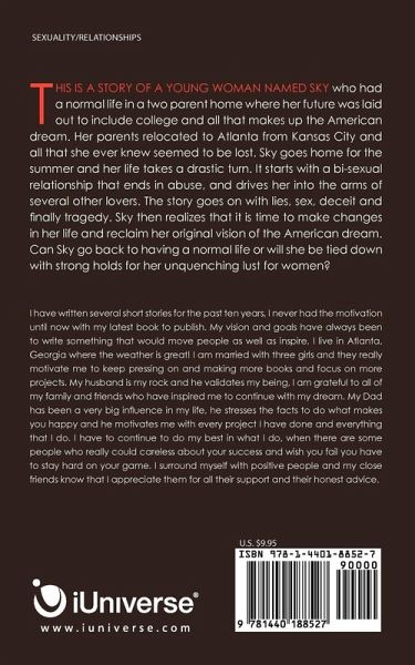 Skys life has always been very interesting from birth when she came out feet first, always trying to get her feet into everything. Her Mother had so much pain bringing her into this world, she was always proud of her. Skys dad always labeling her Daddy's little girl, it was a title that she would keep and hold down. Growing up was really good, she lived in a typical household, both of her parents worked, they were the kind of parents that knew if you don't work you don't eat. Her brother came into the world when she was ten years old it was a true shock to her system, Sky didn't want to share, she wanted her parents to focus on her and only her. Over the years she bonded with her brother and their household life was gravy until the change and not the change of life but the change of lifestyle.Sky made the move of a lifetime, her mothers job was transferred to Atlanta, Georgia she was so upset, at this time she didn't know in ten years this would be considered the black Mecca and the music scene would be so tough and strong that it would clearly be the Hollywood of music.