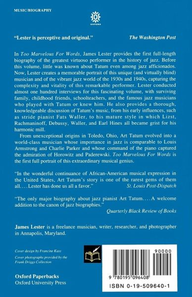 Lester provides the first full-length biography of Art Tatum, the greatest virtuoso performer in the history of jazz.