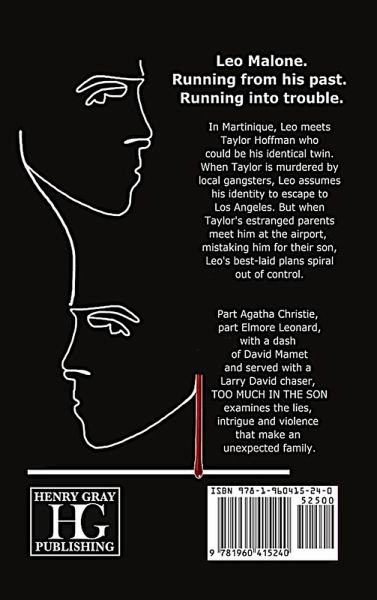 Leo Malone. Running from his past. Running into trouble. In Martinique, Leo Malone meets Taylor Hoffman, a young man who could be his identical twin. Whey they run afoul of a local gangster, Taylor is murdered and Leo assumes his identity to sneak safely out of the country and back to Los Angeles. But when Taylor's estranged parents meet Leo at the airport, mistaking him for their son, Leo's best-laid plans spiral out of control. Full of surprising twists and turns, Too Much in the Son is part Agatha Christie, part Elmore Leonard, with a dash of David Mamet and served with a Larry David chaser. Too Much in the Son examines the lies, intrigue and violence that make an unexpected family. Get your copy of this page-turning thriller today!