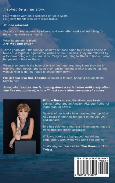 Four women went on a weekend of fun to Miami. Four best friends who were inseparable. No one returned. The story made national headlines, and even after weeks of searching for them, they were never found. What happened to them? Are they still alive? Ten years later, the teenage children of those same four women decide to take a trip together against the wishes of their families. They are followed by a TV crew doing a true crime show. They're returning to Miami to find out what happened to their mothers. When they unearth the mutilated body of one of their mothers, they know they are in way over their heads, and soon they realize nothing is what it seems as this vicious killer is getting ready to chase them down. FBI profiler Eva Rae Thomas is called in to help when the second body is recovered from the trunk of a burnt-out car in the swamps outside Miami, bringing her old flame Matt to help. Soon, she realizes she is hunting down a serial killer unlike any other she has encountered, who will next come after someone she loves.
