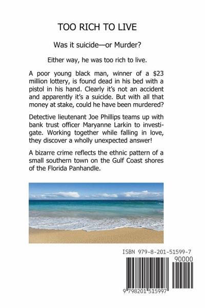 A poor young black man, winner of a $23 million Florida lottery, is found dead in his bed with a pistol in his hand. Was it suicide, or murder? Detective Lieutenant Joe Phillips romances bank trust oficer Maryanne Larking while they investigate. They discover a wholly unexpected answer! A bizarre crime reflects the ethnic pattern of a small southern town on the Gulf Coast of the Florida Panhandle.