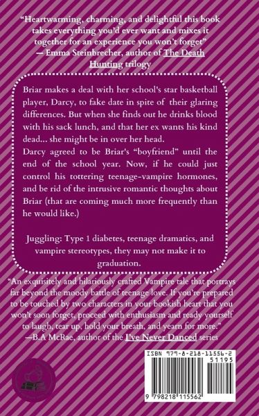 Briar makes a deal with her school's star basketball player, Darcy, to fake date in spite of their glaring differences. But when she finds out he drinks blood with his sack lunch, and that her ex wants his kind dead... she might be in over her head. Darcy agreed to be Briar's "boyfriend" until the end of the school year. Now, if he could just control his tottering teenage-vampire hormones, and be rid of the intrusive romantic thoughts about Briar (that are coming much more frequently than he would like.) Juggling: Type 1 diabetes, teenage dramatics, and vampire stereotypes, they may not make it to graduation. For the fans of teenage vampire novels like: Vampire Diaries, Twilight, and The Chronicles of Vladimir Tod. This is a grumpy/Sunshine Vampire tale you don't want to miss!