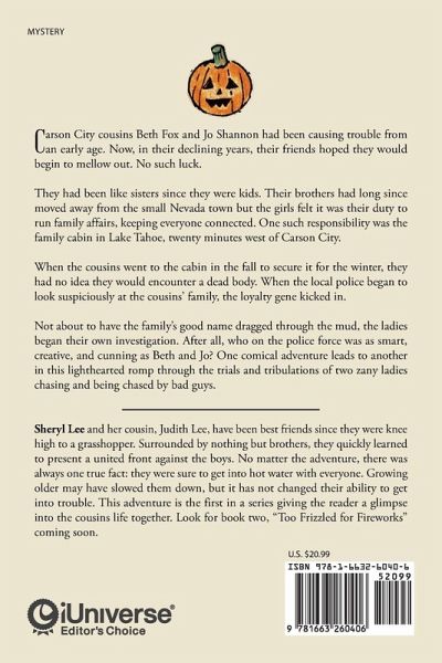 Carson City cousins Beth Fox and Jo Shannon had been causing trouble from an early age. Now, in their declining years, their friends hoped they would begin to mellow out. No such luck. They had been like sisters since they were kids. Their younger brothers had long since moved away from the small Nevada town but the girls felt it was their duty to run family affairs, keeping everyone connected. One such responsibility was the family cabin in Lake Tahoe, twenty minutes west of Carson City. When the cousins went to the cabin in the fall to clean it, remove trash, and secure it for winter, they had no idea they would encounter a dead body. When the local police began to look suspiciously at the cousins' family, the loyalty gene kicked in. Not about to have the family's good name dragged through the mud, the ladies began their own investigation. After all, who on the police force was as smart, creative, and cunning as Beth and Joe? One comical adventure leads to another in this lighthearted romp through the trials and tribulations of two zany ladies chasing and being chased by bad guys.