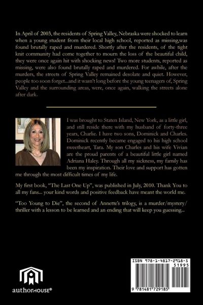 In April of 2003, the residents of Spring Valley, Nebraska were stunned and shocked when a young student from their local high school, reported as missing, was found brutally raped and murdered. Shortly after the residents, of the tight knit community, had come together to mourn the loss of the beautiful child, they were hit with more shocking and devastating news! Two more students, reported as missing, were also found brutally raped and murdered. For awhile, after the murders, the streets of Spring Valley remained desolate and quiet. However, people too soon forget...and it wasn't long before the young teenagers of, Spring Valley and the surrounding areas, were, once again, walking the streets alone after dark.
