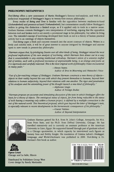 In this work, the author explains Heidegger's tool-analysis and then extends it beyond Heidegger's narrower theory of human practical activity to create an ontology of objects themselves.