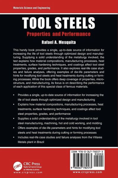 This handy book provides a single, up-to-date source of information for increasing the life of tool steels through optimized design and manufacturing. Supplying a solid understanding of the metallurgy involved, the text explains how material compositions, manufacturing processes, heat treatments, surface hardening techniques, and coatings affect tool steel properties, grades, and performance. It also explores real-life case studies and failure analyses, offering examples of die-life parameters and hints for modifying tool steels and heat treatments during cutting or forming processes. While the book offers deep coverage of properties, microstructure, and manufacturing, its focus is on describing the performance of each application of this special class of ferrous materials. Provides a single, up-to-date source of information for increasing the life of tool steels through optimized design and manufacturing. Explains how material compositions, manufacturing processes, heat treatments, surface hardening techniques, and coatings affect tool steel properties, grades, and performance. Supplies a solid understanding of the metallurgy involved in tool steel manufacturing, machining, hot and cold working, and molding. Offers examples of die-life parameters and hints for modifying tool steels and heat treatments during cutting or forming processes. Includes real-life case studies and failure analyses from the Villares Metals plant in Brazil.