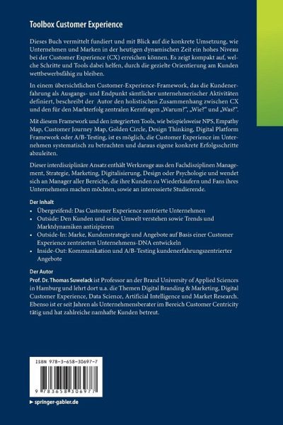 In einem übersichtlichen Customer-Experience-Framework, das die Kundenerfahrung als Ausgangs- und Endpunkt sämtlicher unternehmerischer Aktivitäten definiert, beschreibt der Autor den holistischen Zusammenhang zwischen CX und den für den Markterfolg zentralen Kernfragen "Warum?", "Wie?" und "Was?". Mit diesem Framework und den integrierten Tools, wie beispielsweise NPS, Empathy Map, Customer Journey Map Golden Circle, Design Thinking, Digital Platform Framework oder A/B-Testing, ist es möglich, die Customer Experience im Unternehmen systematisch zu betrachten und daraus eigene konkrete Erfolgsschritte abzuleiten. Dieser interdisziplinäre Ansatz enthält Werkzeuge aus den Fachdisziplinen Management, Strategie, Marketing, Digitalisierung, Design oder Psychologie und wendet sich an Manager aller Bereiche, die ihre Kunden zu Wiederkäufern und Fans ihres Unternehmens machen möchten, sowie an interessierte Studierende.
