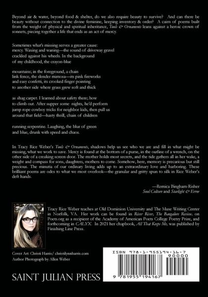 Beyond air & water, beyond food & shelter, do we also require beauty to survive? And can there be beauty without connection to the divine feminine, holding a world together? A cairn of poems built from the weight of physical and spiritual inheritance, Tools & Ornaments leans against a heroic crown of sonnets, piecing together a life that ends as an act of mercy.