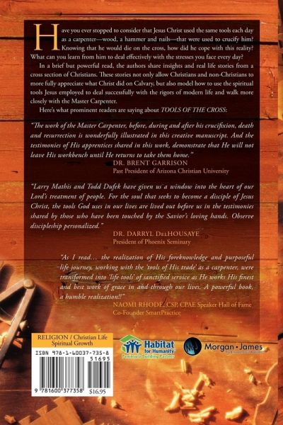 The Tools of the Cross" takes a unique look at the life of Christ and his ministry in that it explores the fact that he used the same tools as a carpenter that were used to crucify him. Further, the book delves into why God chose the profession of carpentry for his son, and how he coped with using the tools of his trade daily knowing full well how his life would end. Finally, the book examines the spiritual tools of the cross, how Christ used them during his ministry and road to the cross, and how we can use these same tools to deepen our spiritual walk with our Lord.