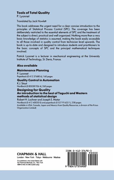 For a long time, quality has been one of industry's main preoccupations. It remains so today. There is some foundation for the statement that there is a 'quality crisis' in Europe, the methods traditionally used in our industries being unable to meet today's demands. Consequently it is essential to look for new directions in which to progress, taking account of the methods for achieving quality that have been developed in recent years. These methods impact on all parts of the industrial enterprise - marketing, manufacturing, research and development, after-sales services. All staff, administrative or technical, are involved. The present book describes the tools that can help anyone who is concerned with the concept of 'total quality'; it will also be a valuable educational aid for students reading for degrees or other qualifications in engineering. P. Lyonnet I General questions and concepts 1 INTRODUCTION: HOW CAN WE ACHIEVE TOTAL QUALITY? This book is concerned with the varioustechniques and methods of analysis that can be used to ensure total quality in a project. In this first chapter we show the costs that result from not achieving quality, so as to make clear how important a quality-assurance service is to any enterprise. We stress also the involvement of marketing, particularly in laying down specifications for reliability.