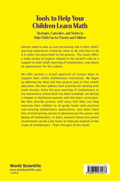 Parents need to take an ever-increasing role in their child's learning experience. However, what to do and how to do it is often not prescribed to the parents. This book offers a wide variety of aspects related to the parent's role as a support to their child's learning of mathematics, and above all appreciation for the subject. The uniqueness of this book is that we provide the parent the information they need about how mathematics is taught in today's early grades. We then provide a plethora of ideas that can motivate children with information beyond that which is taught in the classroom.